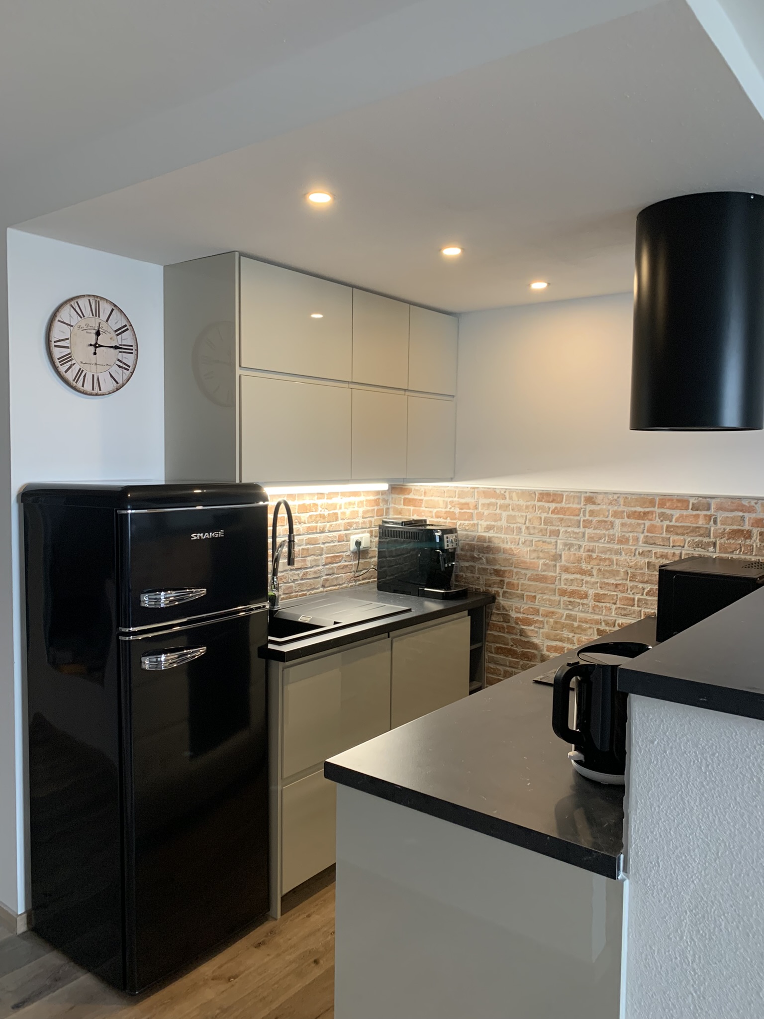Kuchyň je plně vybavena. Naleznete zde lednici, myčku, indukci, kávovar, nádobí a mnoho dalšího